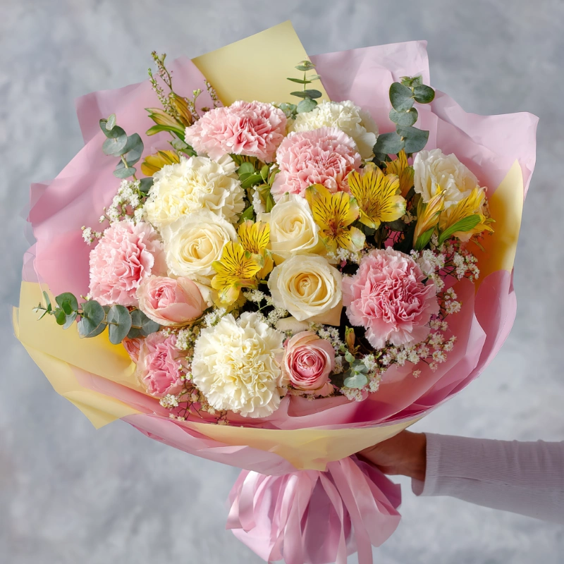 Букет с гвоздиками «Утренний бриз»