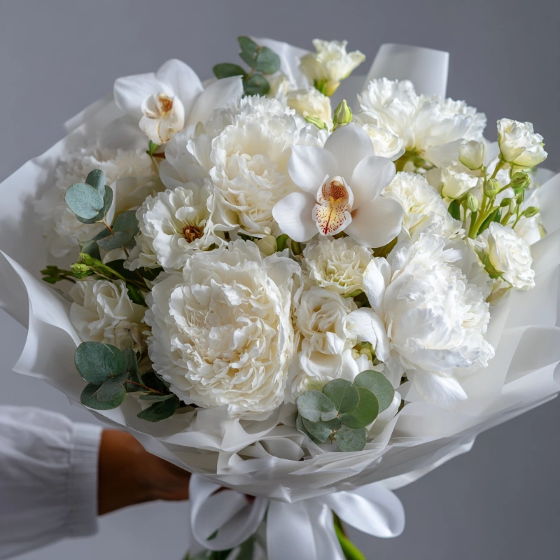ГлавнаяКаталогБукетыПионыБукет с пионами «Снежное прикосновение»