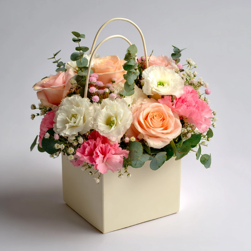 Композиция в сумочке «Цветочный комплимент»