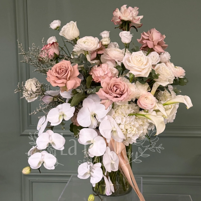 Откройте для себя магию звездного сияния с нашей эксклюзивной «Звездной пылью» — уникальным сочетанием Антуриума, Гортензии, пионовидной Розы и Орхидеи, создающим волшебную атмосферу в вашем доме. Каждый букет — это настоящее искусство природы, наполненное яркими красками и изысканным ароматом. Подарите себе и близким неповторимое чувство праздника с «Звездной пылью» прямо сейчас!