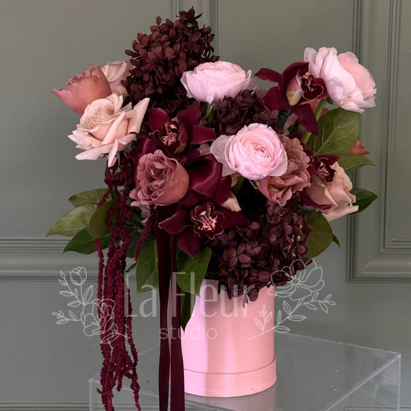 Откройте для себя элегантность и романтику с букетом «Бордовая страсть». В его состав входят благородные орхидеи, нежные розы и изящная гортензия, создавая уникальную гармонию цветов. Этот букет станет идеальным подарком для особых случаев или великолепным украшением интерьера. Подчеркните свою любовь и стиль с помощью утонченного сочетания бордовых оттенков и изысканных цветов.