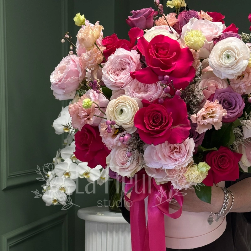 Подарите особое настроение с букетом «Шляпная коробка предвкушение», созданным для тех, кто ценит элегантность и изящество. В его композицию вошли яркие и нежные цветы: гвоздика, эустома, роза, маттиола и дельфиниум, идеально гармонирующие друг с другом. Этот изысканный букет подчеркнет вашу заботу и внимание к деталям, создавая атмосферу романтики и тепла. Благодаря стильной шляпной упаковке, он станет ярким акцентом любого праздника или просто приятным сюрпризом. Свежие цветы долгий срок сохранят свою красоту, радуя глаз и сердце. Идеальный выбор для выражения любви, благодарности или просто для поднятия настроения. Простота и изящность дизайна подчеркнут индивидуальность и неповторимость вашего подарка. Сделайте ваш жест незабываемым, подарив букет «Шляпная коробка предвкушение» уже сегодня.