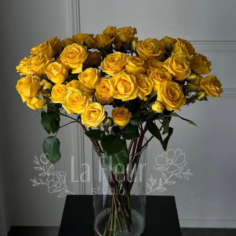 Этот красивый букет состоит из ярких желтых кустовых роз, которые создают ощущение солнечного настроения и радости. Каждый цветок отличается насыщенным цветом и плотными кустовыми соцветиями, придающими букету объем и декоративную привлекательность. Идеально подойдет для поздравлений, выражения благодарности или просто чтобы поднять настроение близким. Цветы свежие и долго сохранят свою красоту и аромат. Букет оформлен аккуратно и элегантно, что делает его отличным подарком на любой случай. Желтые розы символизируют тепло, дружбу и оптимизм, добавляя позитивных эмоций в любой день. Подходит как для оформления праздничного стола, так и для домашнего интерьера. Удобная доставка обеспечит свежесть и презентабельный внешний вид цветов при получении. Этот букет станет ярким акцентом и приятным жестом внимания для каждого получателя.