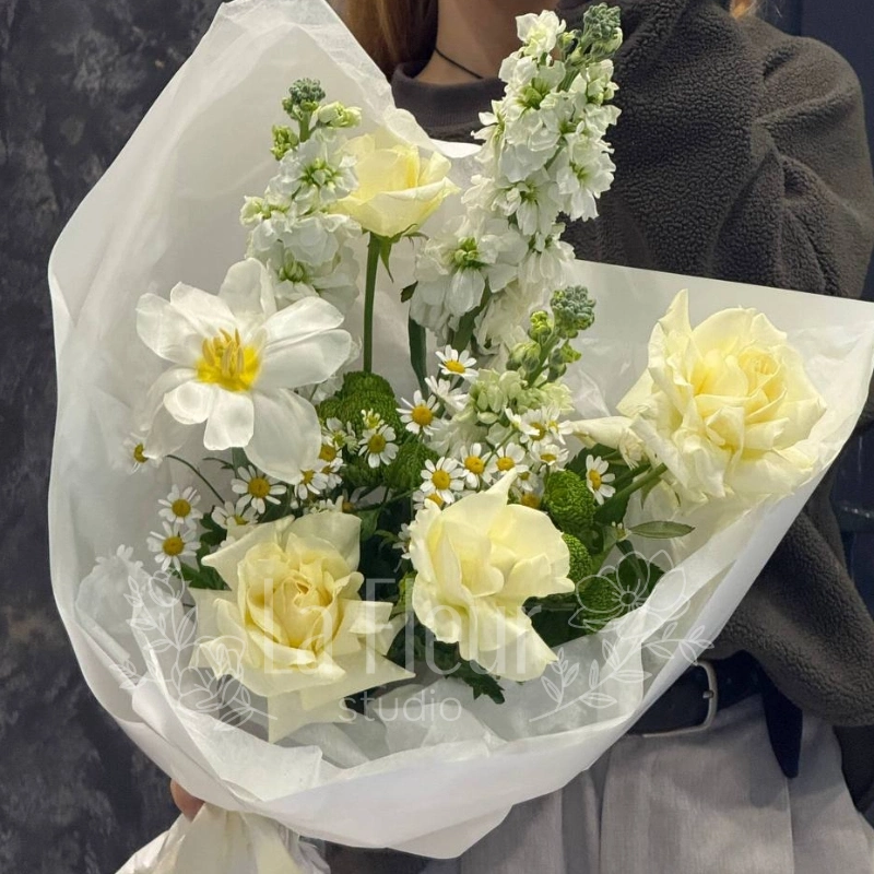 Этот букет цветов излучает тепло и свет, словно солнечный день после дождя. Нежные белые и светло-желтые розы символизируют чистоту и искренность, а мелкие белые цветы добавляют композиции легкость и воздушность. Букет «Светлый день» идеально подходит для выражения благодарности, радости или просто для создания уютной атмосферы. Он станет прекрасным подарком для тех, кто ценит красоту и гармонию природы.