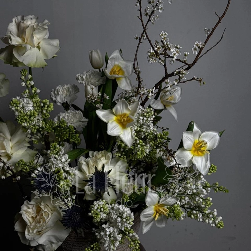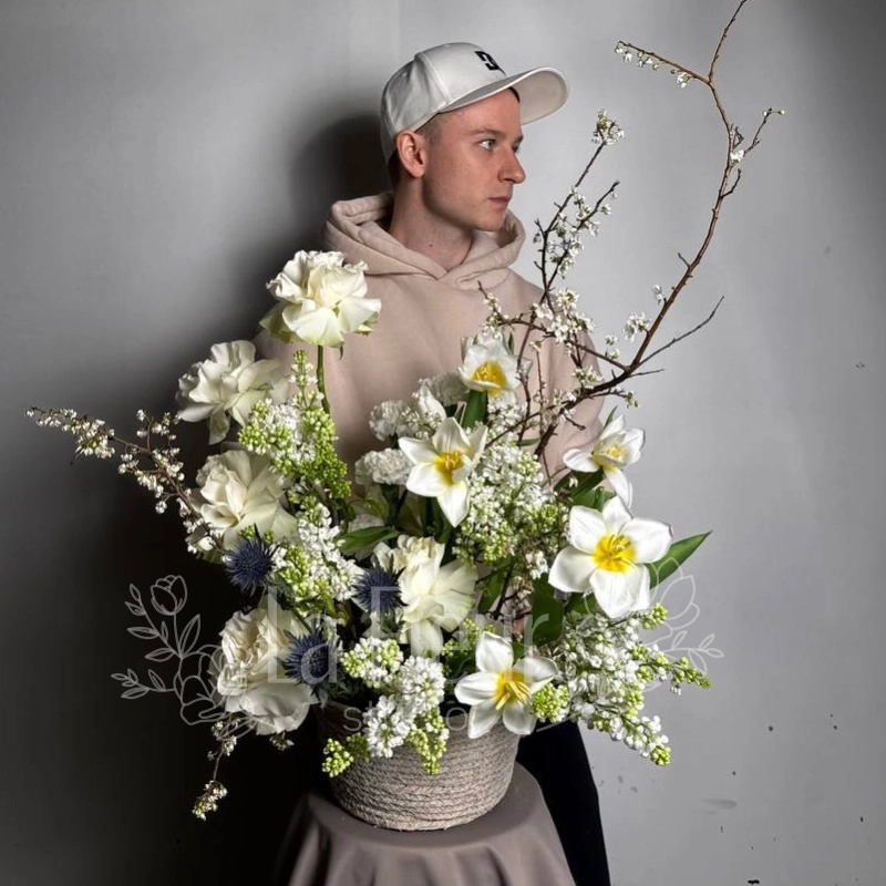 Погрузитесь в атмосферу весны с нашим изысканным букетом «Страсть весны», наполненным нежностью и яркостью. В его составе сочетаются , сирень, пионовидные розы, нарциссы, тюльпаны и классические розы — всё, что пробуждает душу к новому началу. Этот букет создаст в вашем доме ощущение свежести и романтики, напоминая о первых солнечных днях. Идеально подходит для подарка или для украшения интерьера, чтобы всегда чувствовать вдохновение. Натуральные цвета и гармоничное сочетание цветов делают его универсальным решением для любого интерьера и настроения. Обрадуйте близкого человека или украсьте свою жизнь этим прекрасным символом весенней страсти.