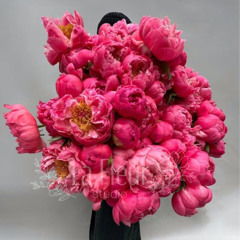 Букет из пионов «Сочные краски» – настоящее воплощение летнего изобилия и нежности. Огромные, пышные цветы раскрываются, демонстрируя все оттенки розового, от бледно-лососевого до насыщенного фуксии. Каждый пион в этом букете – произведение искусства природы, способное подарить радость и ощущение праздника. Этот букет подарит ощущение тепла, солнечного настроения и нежности.