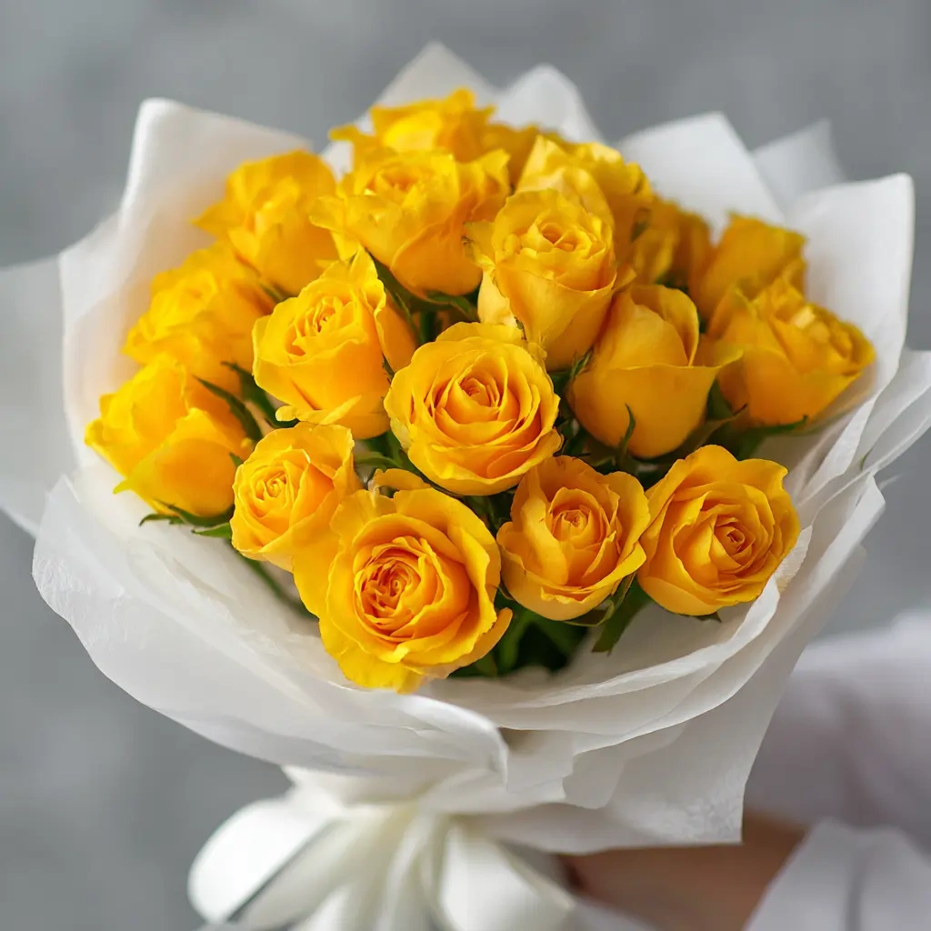 ГлавнаяКаталогРозы15 роз15 желтых кенийских роз 40 см