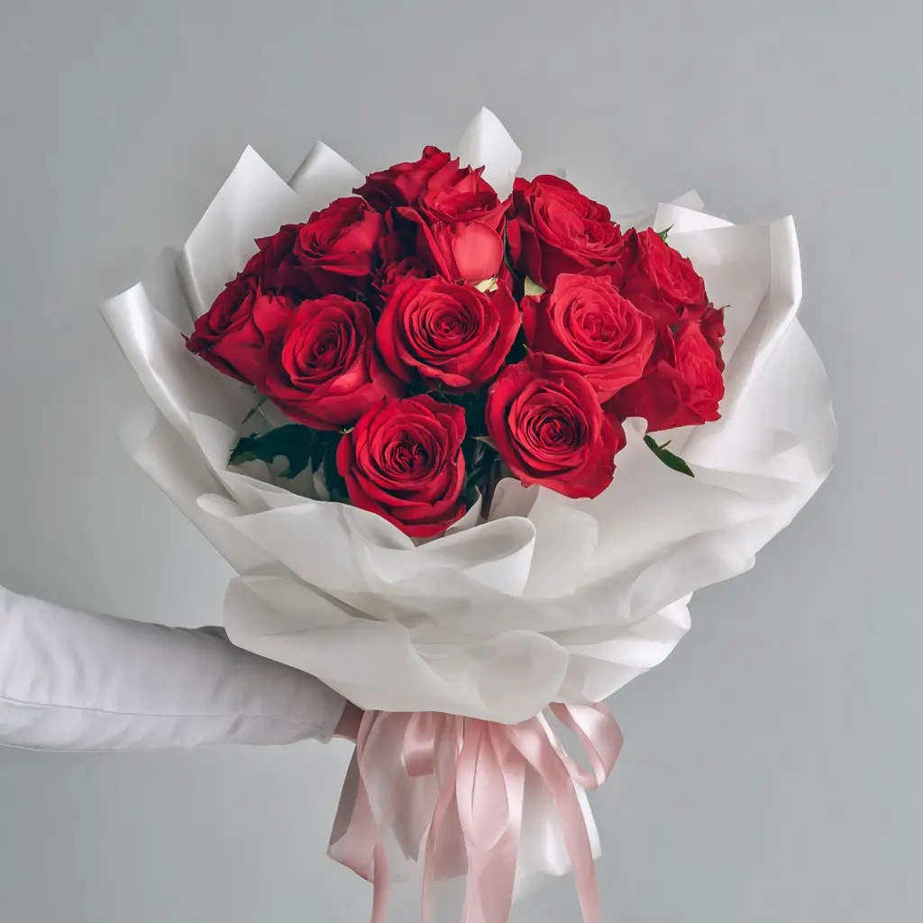 Идеален для эмоциональных встреч, свиданий и ярких впечатлений. Роскошные красные бутоны придают букету характер, а оформление подчёркивает глубину момента.